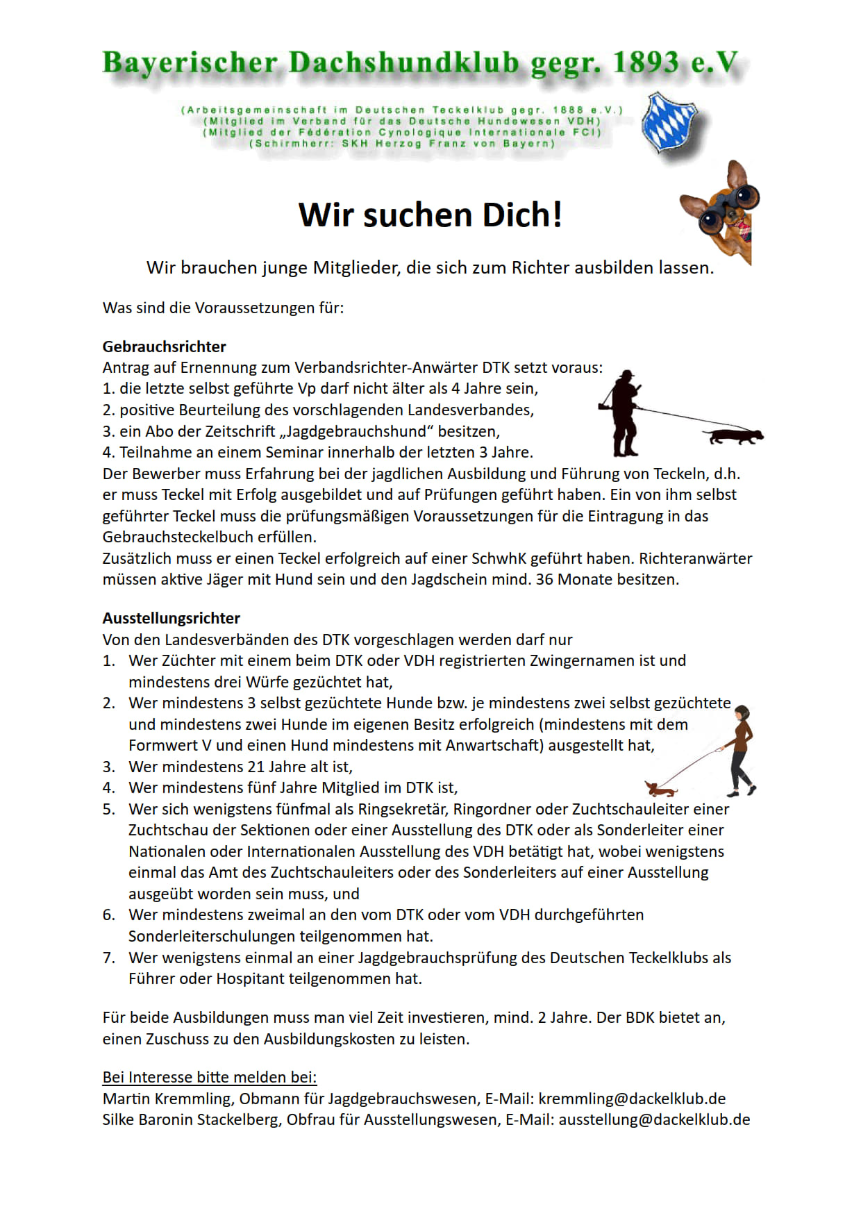 Bayerischer Dachshundklub gegr. 1893 e.V.Schirmherr: SKH Herzog Franz von Bayern mehr Informationen Willkommen auf der Homepage des Bayerischen Dachshundklub gegr. 1893 e.V. Wir sind der richtige Ansprechpartner für alle Jäger, Dackelliebhaber und solche die es werden wollen. WICHTIGE MITTEILUNG!!!! Suchen nach: